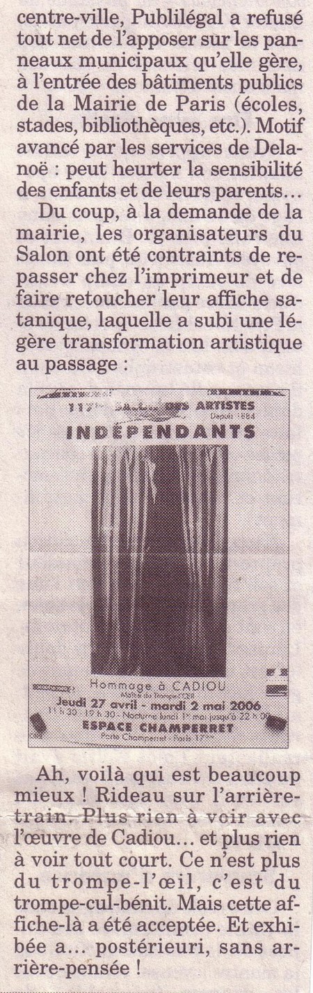 Cet article, provenant du canard enchainé, montre le ridicule de la censure anti-nudité. Une véritable méprise de l'art et de la culture sous pretexte de jugements arrièrés et sans fondement.