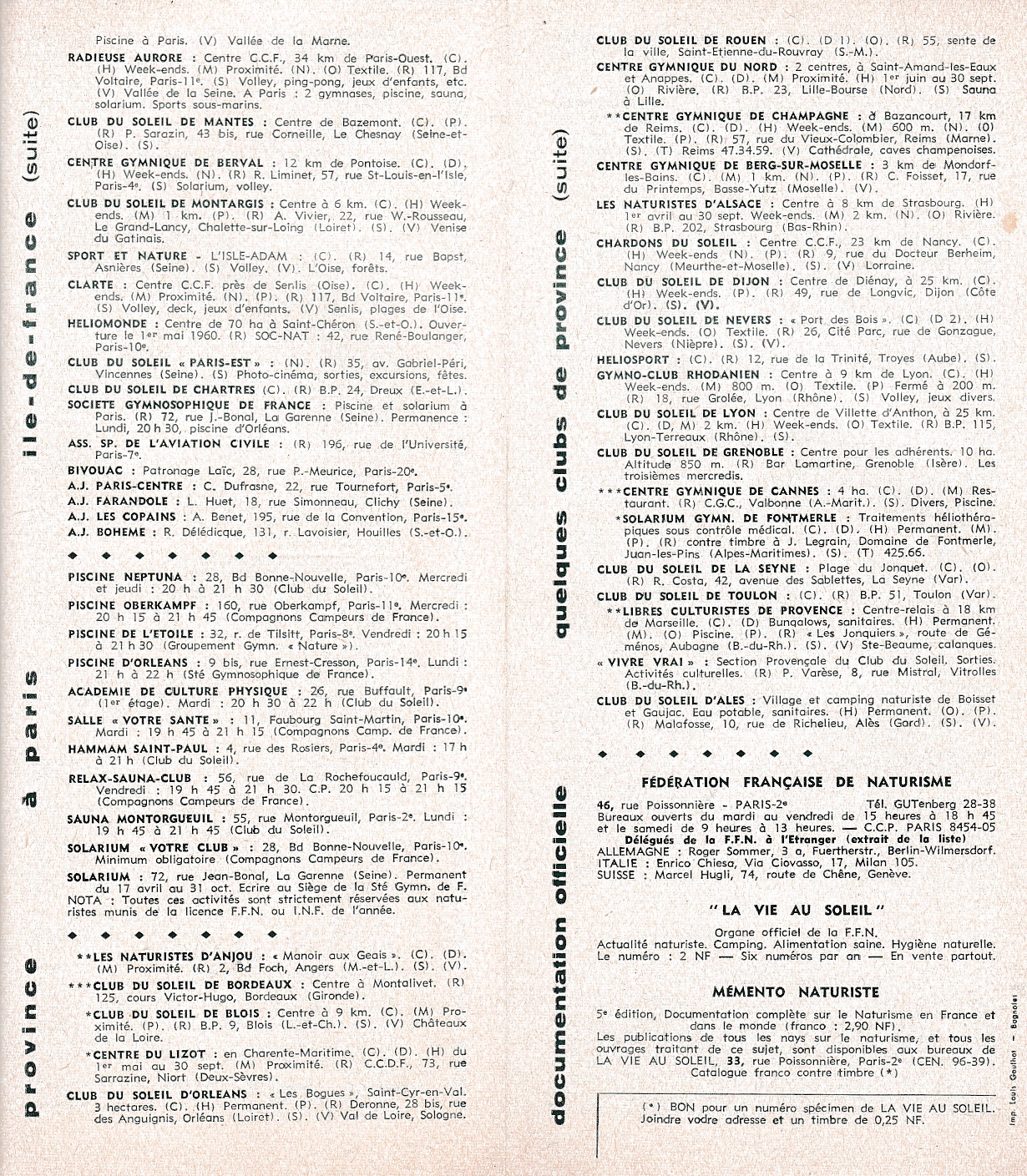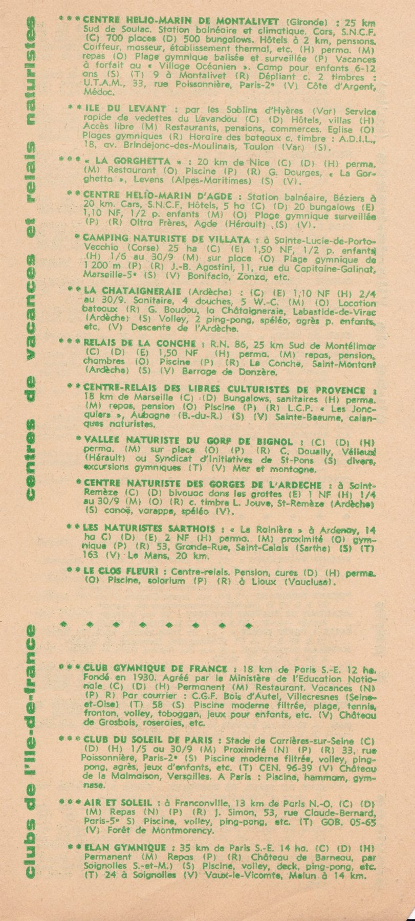 Dépliants de la Fédération Française de Naturisme (années 60)