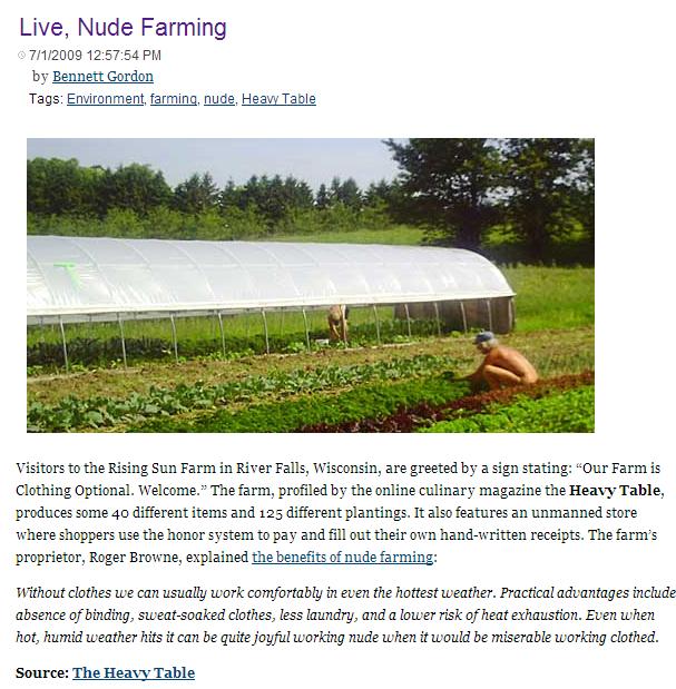 DOSSIER ETATS UNIS – ferme naturiste à Minneapolis Auteur/autrice de la publication :Bruno Saurez Publication publiée :2 décembre 2012 Post category:Etats Unis / Naturisme Commentaires de la publication :0 commentaire http://heavytable.com/the-naturism-of-rising-sun-farm-in-river-falls-wi/ http://risingsunfarm.org/ Étiquettes: naturisme Read more articles Article précédentDOSSIER ETATS UNIS – Naturisme au Wisconsin Article suivantCourir nu est légal en Nelle Zélande ! Vous devriez également aimer Les naturistes interessent la télé 6 juillet 2012 « Initiatives Océanes » sur St Aygulf 31 mars 2015 Liberté et naturisme (1978) 20 septembre 2019 Laisser un commentaire Annuler la réponseCommentEnter your name or username to comment Enter your email address to comment Saisir l’URL de votre site (facultatif)