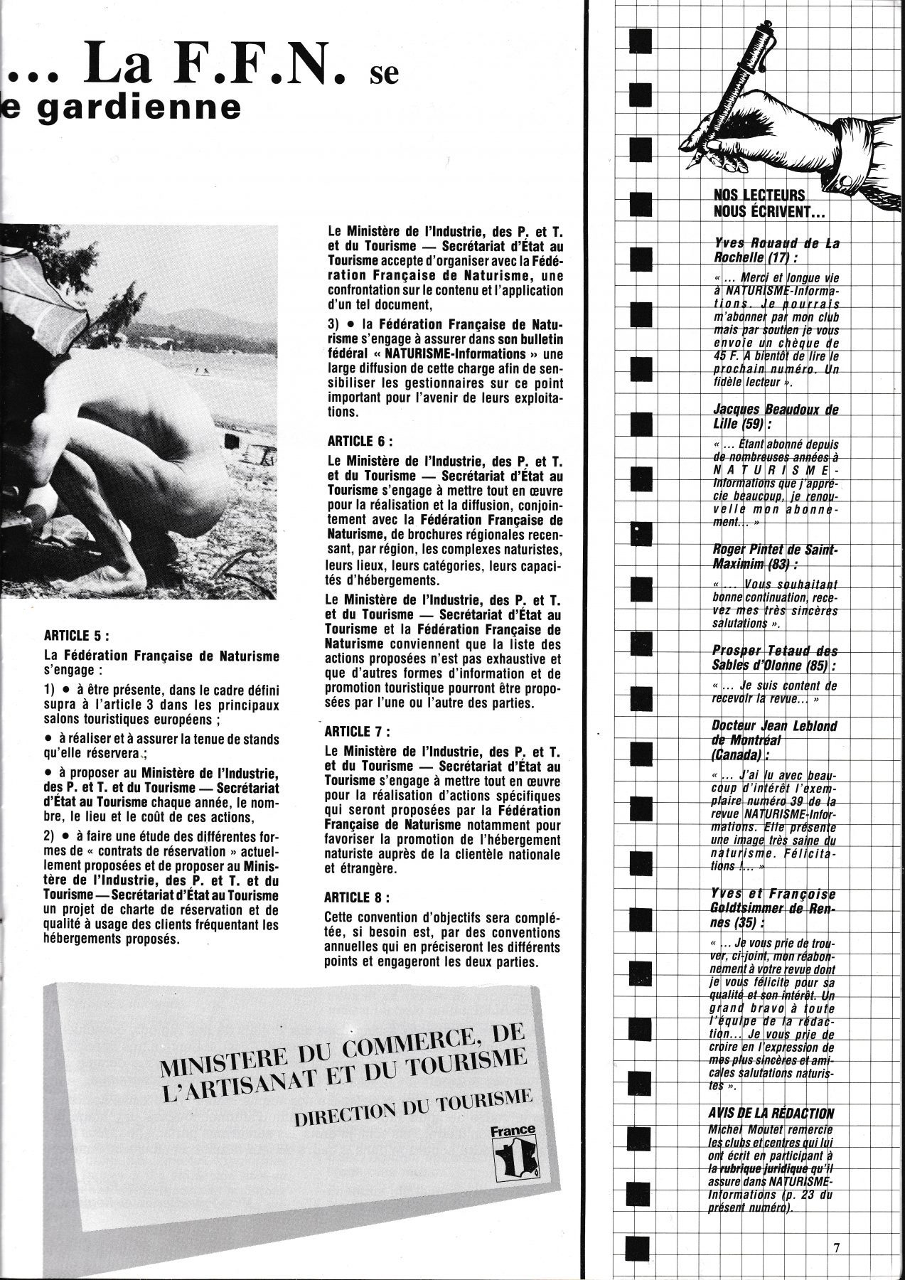 En 1987, reconnaissance ministérielle du tourisme de l’importance du naturisme Auteur/autrice de la publication :Bruno Saurez Publication publiée :6 septembre 2018 Post category:Fédération Française de Naturisme / Histoire du naturisme Commentaires de la publication :0 commentaire En 87, l’Etat, par l’intermédiaire des Ministères de l’Industrie, des P et T et du Tourisme, reconnait l’importance sociale et économique du naturisme. Vous devriez également aimer Un curé adepte du naturisme 29 juillet 2013 Thalassa – reportage sur le Levant (17.04.2015) 2 septembre 2015 Du plaisir de la randonnue 22 janvier 2021 Laisser un commentaire Annuler la réponseCommentEnter your name or username to comment Enter your email address to comment Saisir l’URL de votre site (facultatif)