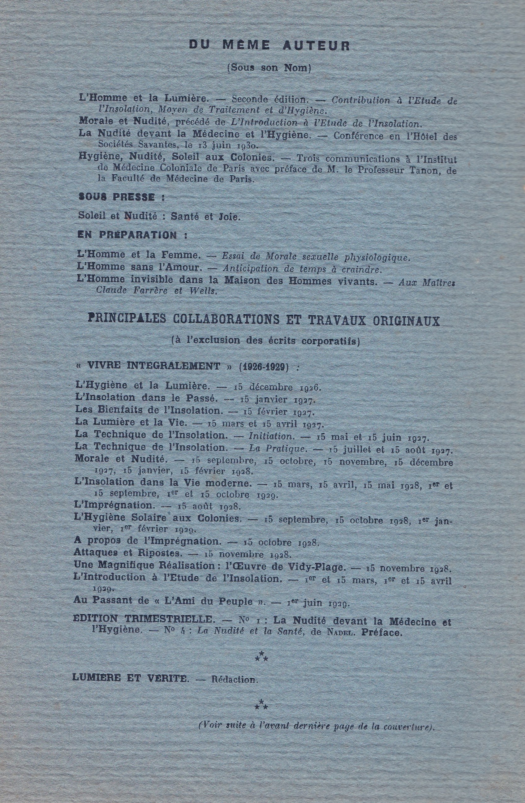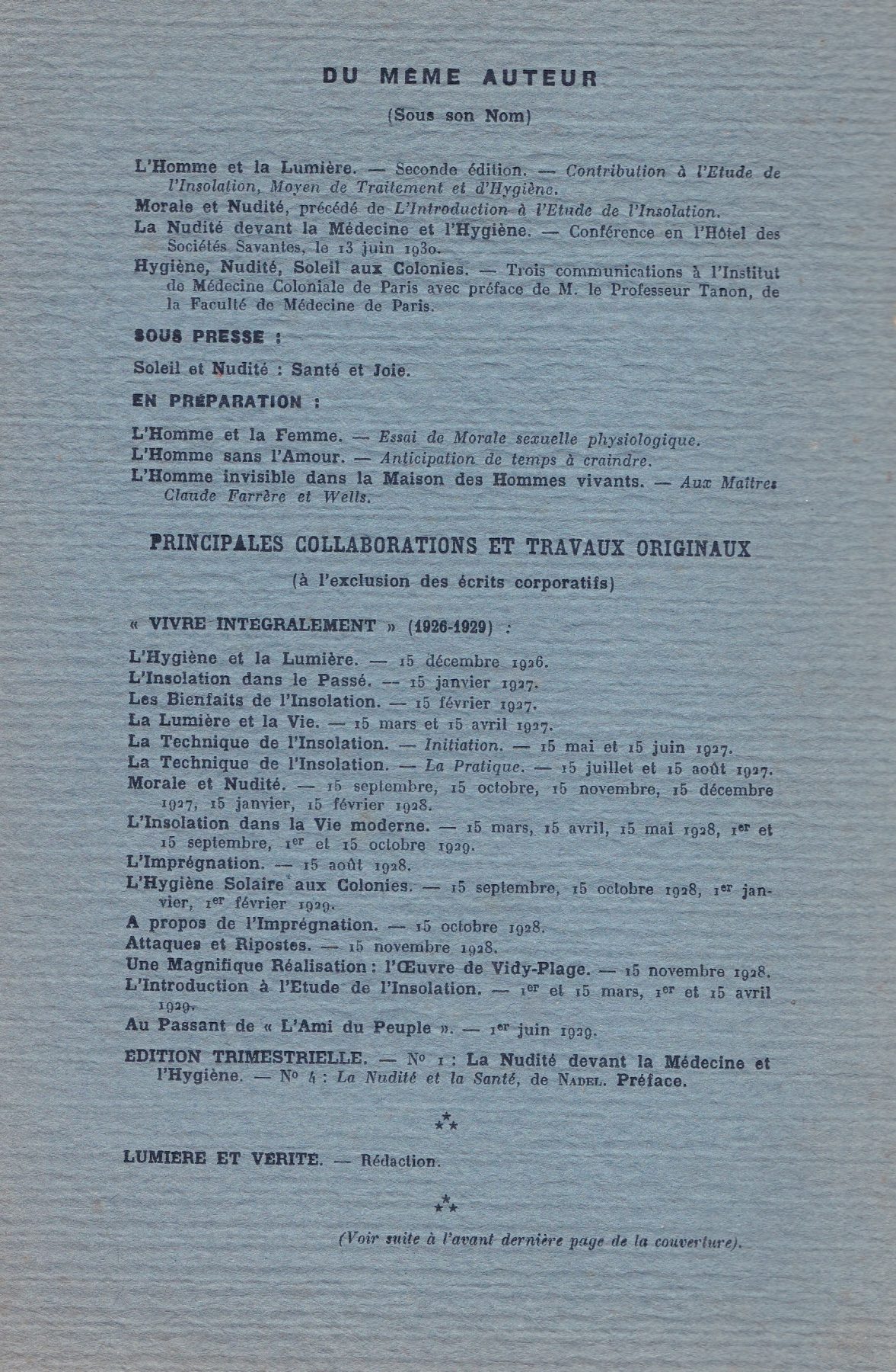 Fougerat de Lastours – Hygiène, nudité, soleil aux colonies – 1931 Auteur/autrice de la publication :Bruno Saurez Publication publiée :19 janvier 2019 Post category:Histoire du naturisme / Santé Commentaires de la publication :0 commentaire Vous devriez également aimer Le Frioul aux naturistes (1930) 18 juillet 2019 1986 – As nature intended – A pictural history of nudists 19 novembre 2020 Le naturisme, une évolution constante (Partie 2 – Le temps des grandes concrétisations) 3 novembre 2014 Laisser un commentaire Annuler la réponseCommentEnter your name or username to comment Enter your email address to comment Saisir l’URL de votre site (facultatif)