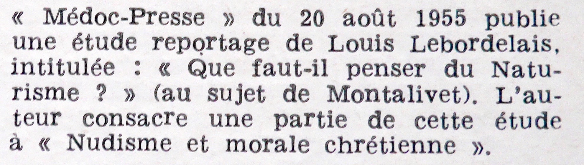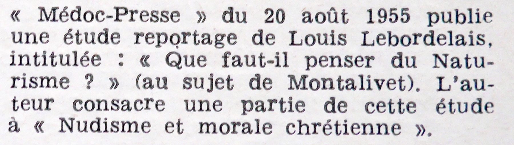 « Assez maladroitement, la FFN dira souvent dans ses revues que le CHM de Montalivet était le premier centre naturiste français, oubliant toute la partie de l’histoire de notre mouvement qui a précédé la guerre. »