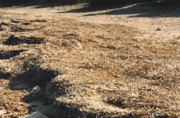 banquettes de feuilles mortes de posidonies en bordure de plage.