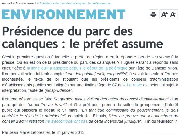 Le prefet assume son silence Auteur/autrice de la publication :Bruno Saurez Publication publiée :4 février 2013 Post category:Parc National des Calanques Commentaires de la publication :0 commentaire Parc des Calanques: le préfet au ministère de l… par LCM http://www.marsactu.fr/environnement/presidence-du-parc-des-calanques-le-prefet-assume-30247.html Étiquettes: Le parc national des Calanques Read more articles Article précédentLes calanques et les problèmes de pollutions Article suivantRecours pour invalider la Présidence du Parc National des Calanques Vous devriez également aimer Le hameau des Goudes doit être en coeur du Parc National des Calanques 6 avril 2011 Manifestation pour le Parc National des Calanques (compte rendu photo) 13 décembre 2010 Escalade, randonnée, parc national et les boues rouges des Calanques 16 novembre 2015 Laisser un commentaire Annuler la réponseCommentEnter your name or username to comment Enter your email address to comment Saisir l’URL de votre site (facultatif)