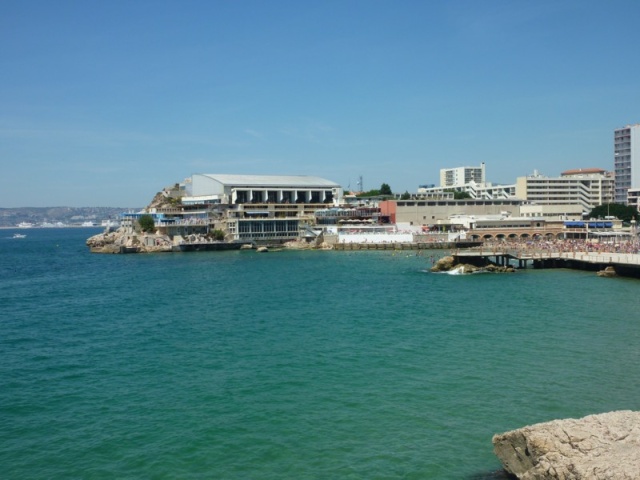 ci-dessus la plage des Catalans avec le cercle des nageurs de Marseille sur la gauche