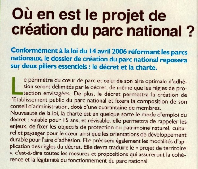 Créé en décembre 1999, le GIP avait déjà vu son existence prolongée une première fois pour trois ans jusqu'au 17 décembre 2010. L'enquête d'utilité publique qui doit précéder le décret de création du parc ne devrait finalement débuter que fin mars/début avril 2011, après les élections cantonales en mars.