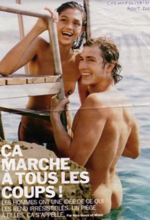 Page vu dans le cosmopolitain sur un dossier de drague. On y voit un homme sortant de l'eau nu ( le naturisme serait il devenu à la mode ou est-ce que la nudité affichée servirait à attirer le regard afin que l'article soit lu ?)