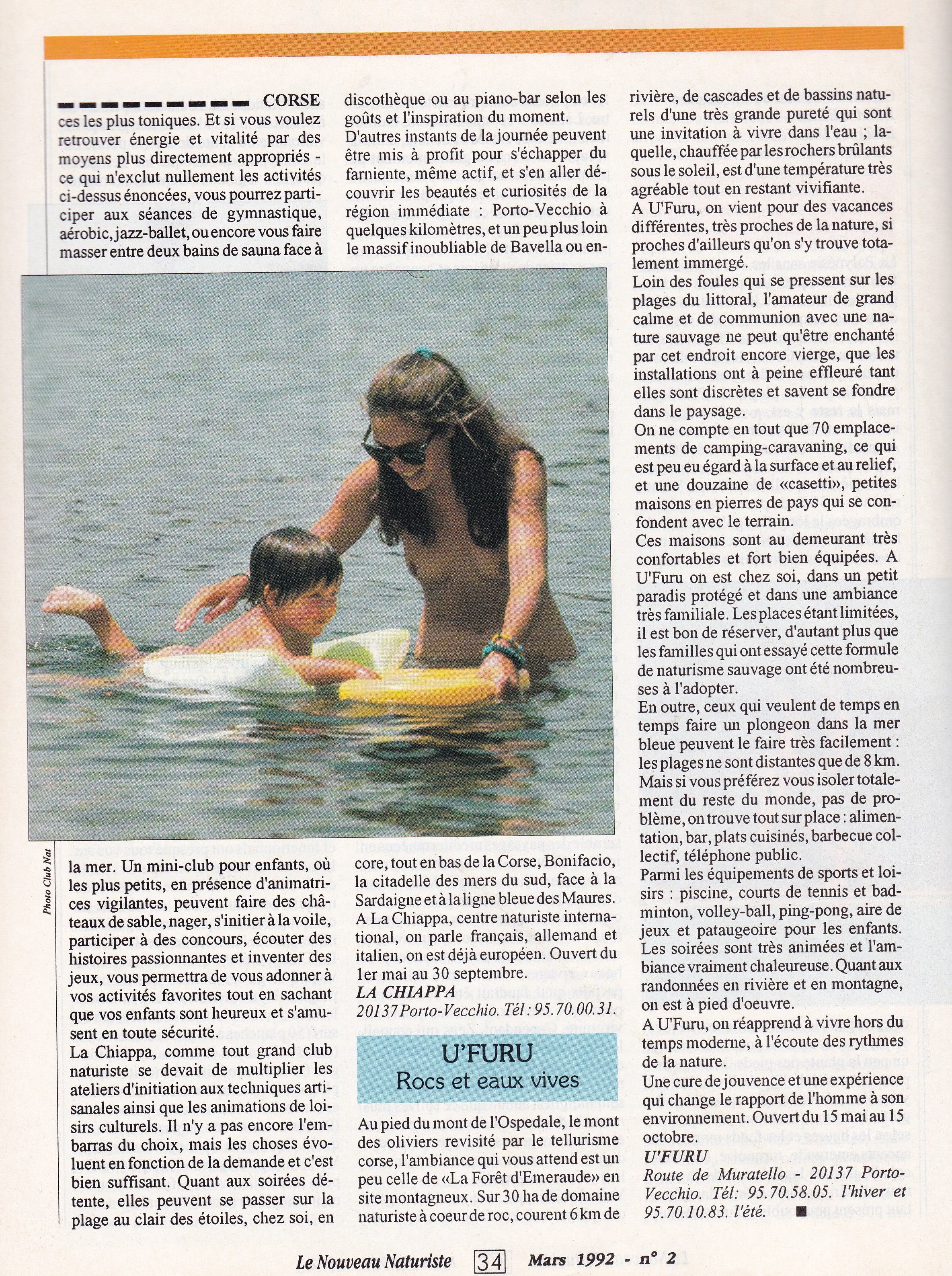 Un superbe dossier sur le naturisme en Corse en 92